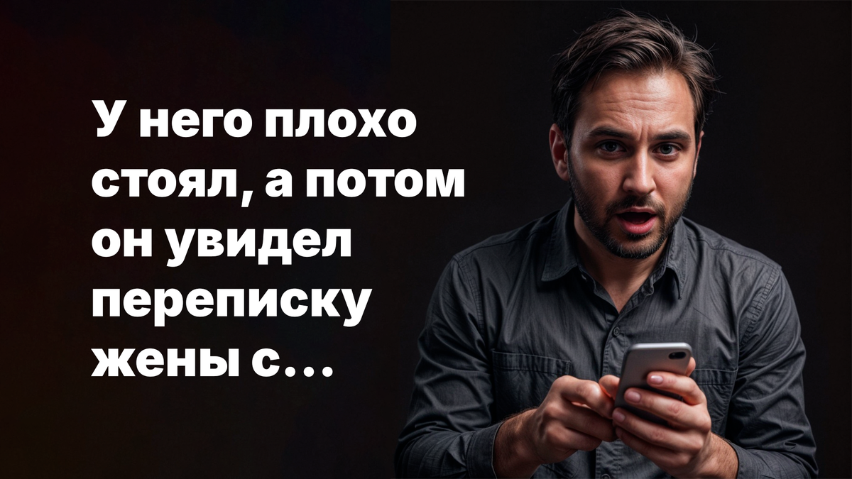 Обостряло ситуацию ещё и то, что жена не скрывала своего недовольства и были случаи, когда они начинали заниматься «любовью», а она безынициативно лежала с недовольным выражением лица. Не удивительно, что тут случались проблемы с эрекцией, но он винил себя. И вот в таких условиях, с осечками и мыслями о себе, как плохом любовнике он находит откровенные фото, которые жена шлёт другому. «Даже мне она таких никогда не присылала».