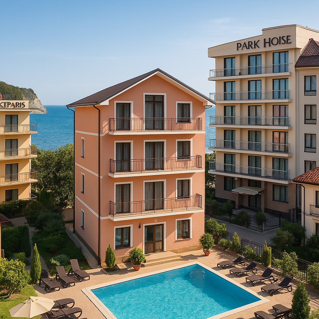 Отель «Парк Хаус» расположен на живописном склоне горы в окружении вековых сосен, создавая уединенную атмосферу вдали от курортной суеты. Благодаря возвышенному расположению гости наслаждаются чистым горным воздухом и тишиной, при этом до морского побережья всего 7-10 минут неспешной прогулки вниз. Отель находится в удобной близости от всей необходимой инфраструктуры — магазинов, столовых и развлечений.