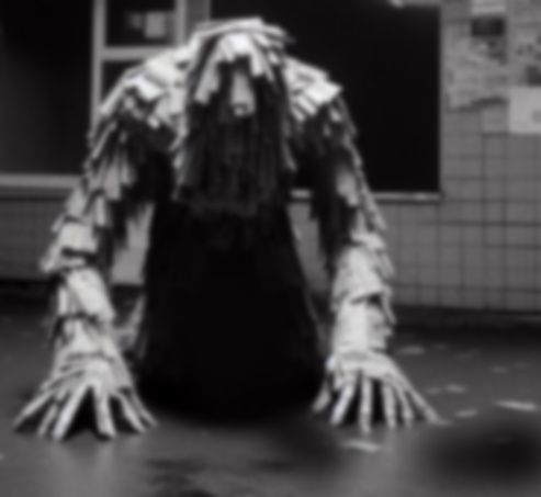Газета "Май", выпуск №17, 2009 год В ночь с 14 на 15 сентября житель нашего города, представившийся Александром, столкнулся с пугающим явлением. Возвращаясь домой поздно вечером через двор жилых домов, он заметил движение в стороне заброшенного газетного киоска. Казалось, что кто-то крадётся в темноте, скрываясь между гаражами. Шорох был странный — сухой, неровный, будто кто-то не шел, а терся о землю. «Я сначала подумал, что это собака, – рассказал Александр. – Или бомж какой-то ищет ночлег. Но движение было неправильным. Слишком медленным, будто кто-то тянул себя по земле». Из тени медленно выползло нечто, напоминающее человеческую фигуру. Однако было очевидно, что это не человек. В свете ближайшего фонаря Александр различил, что у существа не было нижней половины тела — вместо ног из-под рёбер спускалась рыхлая масса грязных, старых газет, перемешанных с чем-то тёмным, будто сырой глиной. Они цеплялись за асфальт, оставляя после себя влажный след. Руки выглядели почти нормальными —