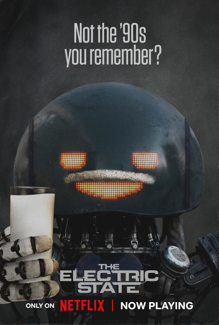 Для начала стоит знать, что первоисточник представлял собой не полноценное произведение, скорее, артбук, в котором меланхоличный сюжет разворачивался вокруг девушки, путешествующей со своим роботом по Западному побережью. Но вместо досконального переноса оригинала на большие экраны, братья Руссо придерживаются шаблонов любого блокбастера, и подобный ход вряд ли кого-то удивит. Любопытно, что их предрелизные интервью буквально противоречат друг другу: они утверждали, что хотели снять live-action мультфильм Pixar, параллельно заявляя о том, что «Электрический штат» является своего рода разминкой GGI-эффектов перед грядущей дилогией «Мстители». Первое, на что хотелось бы обратить внимание – обширная предыстория, из-за которой авторам просто не остаётся времени на личную трагедию главной героини, упоминаемой вскользь. Дальнейшее повествование представляет собой стандартное путешествие из пункта А в пункт Б, однако нюанс заключается в том, что за два с лишним часа хронометража в «Электрическом штате» не более пары экшен-сцен, хотя концепт фильма даёт авторам простор для многочисленных боевых эпизодов. Видно, что в сюжете есть намёки на разделение роботов по кланам, но эти сцены не влияют на происходящее и не дополняют картину. А хрестоматийное повествование, не предусматривающее никаких «сюрпризов» для аудитории, дополняется гуманистической философией и поверхностной критикой высших слоёв общества. Но несмотря на провал фильма, «Электрический штат» - совершенно необязательный, но обаятельный блокбастер с парой неплохих сцен и впечатляющим визуалом.