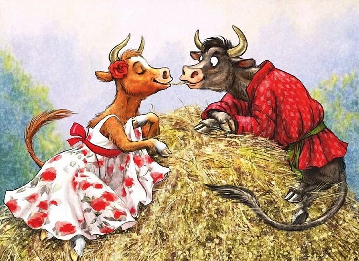 Продолжаем наше повествование о символике животных и смыслах их жизни с точки зрения средневекового славянина. Какие же неожиданные повороты ждут нас сегодня? 1. Корова и бык Когда мы говорим о символике животных пол обычно не важен, кроме двух исключений – пара корова и бык, и пара курица и петух. В этих случаях животные делятся по полу, ибо каждое из них символизирует что-то свое. Издревле корову считают связанную с небом. По всей Земле есть легенды о небесных коровах (вспомним египетскую Нут). У славян таких легенд не сохранилось, но осталось множество косвенных поверий – в некоторых местностях дождь сравнивают с молоком, а в шуме дождя слышалось коровье мычание. Корова-«матушка» олицетворение благополучия и счастья. Ее сила была очень велика, она была способна отогнать саму смерть (считалось, если в семье кто-то умирал, значит смерть вскоре придет за другим членом). Корову дарили священнику после похорон, таким образом, как бы перекрывая путь смерти. Однако, порой, смерть тоже пр