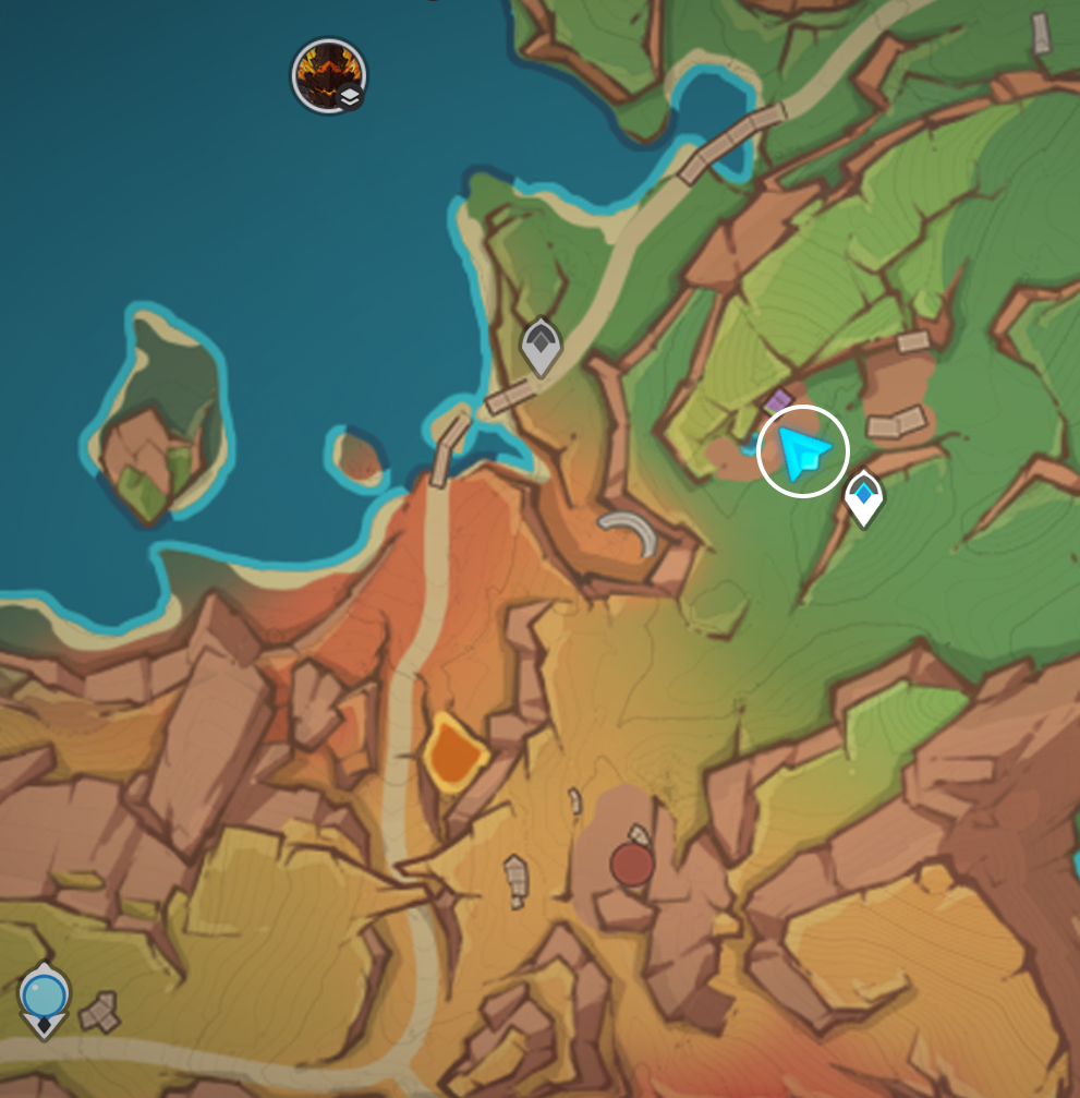 Следующий первый детеныш – на юго-востоке от ближайшего телепорта. Разбираемся с хиличурлом, который его преследует.