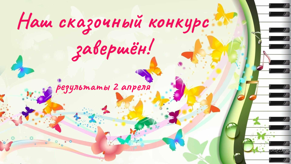 Друзья, приём работ на IV литературный конкурс проекта «Музыкальные сказки» завершен! Благодарим всех наших участников! Подведение итогов и объявление результатов конкурса состоится 2 апреля, в день рождения великого сказочника Ганса Христиана Андерсена. А до этого нас с вами ждут несколько сказочных дней, в течение которых будут опубликованы все поступившие на конкурс сказки! ✨✨✨✨✨✨✨ Благодарим за лайки, комментарии и подписку на канал! Это очень помогает развитию проекта «Музыкальные сказки» (о прекрасной музыке для всей семьи) 🎼💞 ✍🏻 Канал «Музыкальные сказки» в Телеграме ✍🏻 Группа «Музыкальные сказки» в ВК ✍🏻 Канал «Музыкальные сказки» на Rutube ✍🏻 Мой личный канал в Телеграме