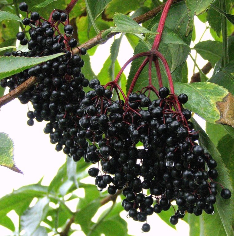 Многие может думают что бузина не приживётся в суровых условиях российской зимы или просто не даст плодов. Но сейчас запросто можно найти морозоустойчивые саженцы. А теперь давайте разберёмся какую пользу бузина приносит и почему опытные дачники рекомендуют её высаживать. Черная бузина совсем неприхотлива, она может расти в почти глиняной почве, отлично переносит затенение, но лучше плодоносить будет на освещённых участках. Она совсем нетребовательная к кислотности почвы, засухоустойчива и зимостойкая. Инфекции и грибки её редко поражают. А ещё чёрная бузина легко переносит обрезку и быстро восстанавливается. Ягоды чёрной бузины, в отличии от красной, съедобны. В свежем виде они имеют специфический вкус, а вот после термической обработки приобретают яркий кисло-