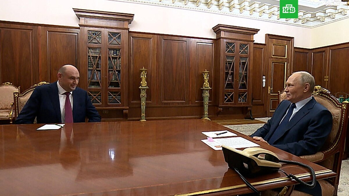 Президент Владимир Путин провел в Кремле встречу с главой правительства ДНР Евгением Солнцевым. Глава государства поблагодарил его за работу, проделанную на этом посту.