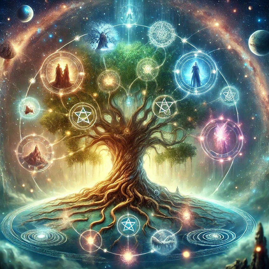 Представьте себя у ствола мирового древа. Снизу тянутся корни (подсознание, «низшие миры»), сверху — ветви (божества, вдохновение). Вы можете «посещать» воображаемые миры, узнавая, где вам комфортнее, где возникает страх или интерес. Эта практика улучшает самопознание, стимулирует творческое мышление.