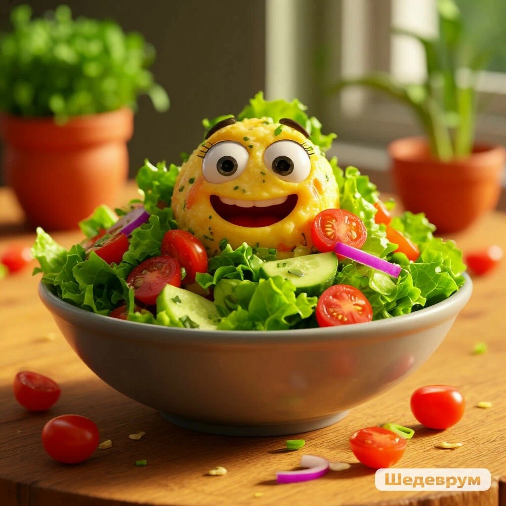 Вуаля! Наш задорный салат готов! Приятного аппетита и весёлого настроения за столом!