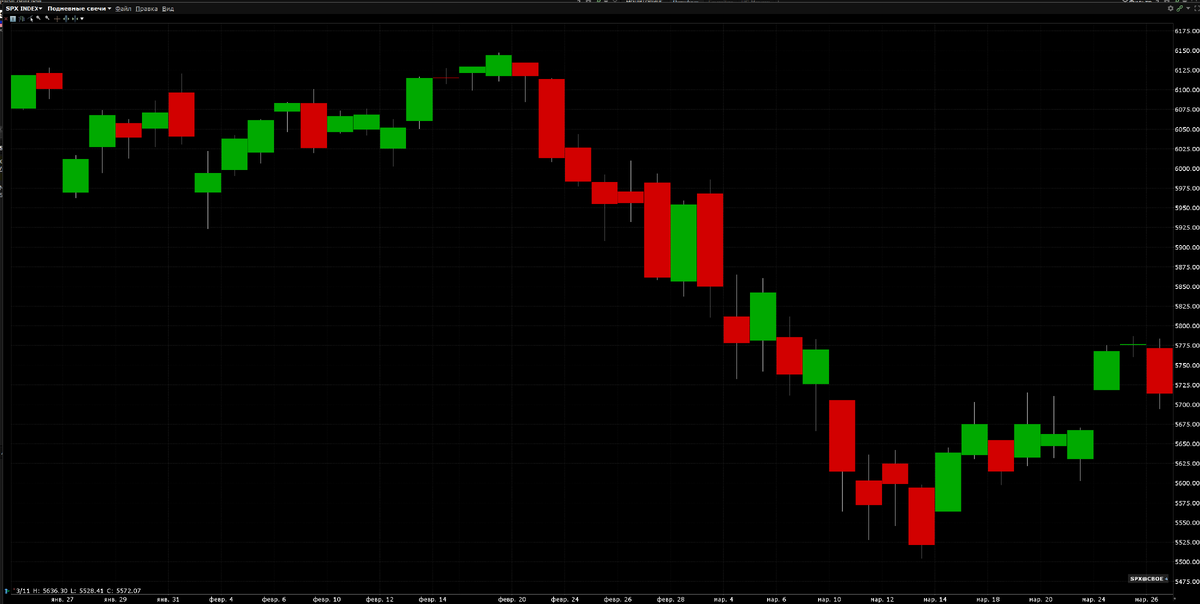Формально пока мы находимся в коррекции, а не в медвежьем рынке, но в понедельник я отзывался о нём именно так, ожидая дальнейшего снижения по крайней мере до 5400 (а в идеале до 5100) для новых покупок после теста 5750-75. Пока этот сценарий работает, после теста этого диапазона в начале недели $SPX снова упал в среду, но этот откат помог мне избавится с нулевыми потерями от $TSLA и $BA, которые покупались перед выборами Трампа как главные бенефициары его победы, а сейчас эти предпосылки исчезли по известным причинам.