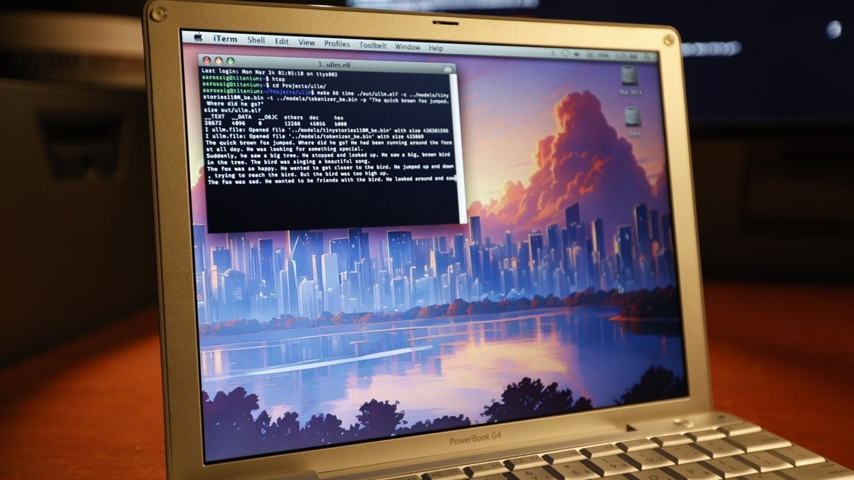 Зачем? Это больше эксперимент, чем практичная вещь. Но он показывает, что старые устройства могут справляться с современными задачами, если их хорошо настроить. PowerBook G4 даже смог придумать простые детские истории.