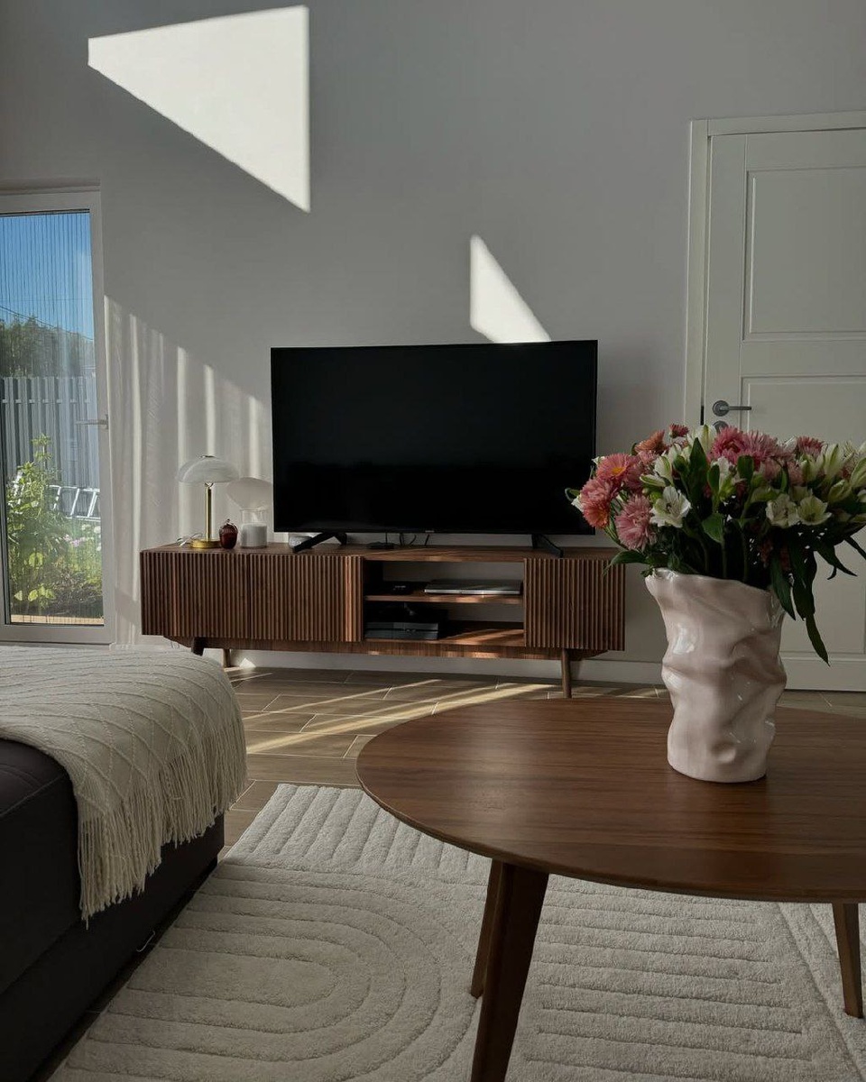 Люди! Не берите мебель с реечными фасадами! Не эстетично, не практично, визуально удешевляет любой интерьер. Насколько эстетичнее и гармоничнее смотрелся бы хороший гладкий шпон на тумбе под телеком! Уж простите, крик души😂
