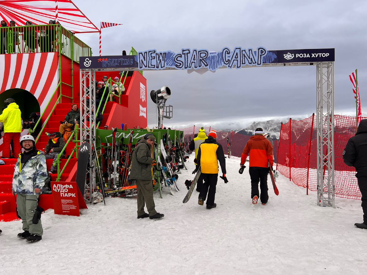 Сочи. На Роза Хутор прямо сейчас и в ближайшие 4 дня происходит настоящий водоворот событий. Он захлестнул всех тех, кто приехал на ежегодный фестиваль New Star Camp в марте 2025 года. Нам довелось увидеть все своими глазами. Фестиваль продлится до 30 марта, ещё есть время купить билет в Сочи. Фестиваль проводится в десятый раз. Для того, чтобы попасть на него, потребуется специальный браслет и ски-пасс. Главные события фестиваля разворачиваются на двух площадках: Ориентироваться стоит на эту программу мероприятий. Такие же стенды можно увидеть на Роза Хутор: В центре внимания — горнолыжный спорт. Сноуборд, лыжи... В эти дни любителей покататься особенно много. Достаточно взглянуть на количество досок, «припаркованных» у входа. На высоте 1600 метров над уровнем моря, в сноупарке сноубордисты выполняют трюки на трамплинах: И рейлах: Лыжники тоже не остаются в стороне: Кстати, для лыжников в этот день (26 марта) проходил Чемпионат России по фристайлу биг-эйр. Спортсмены брали разгон,