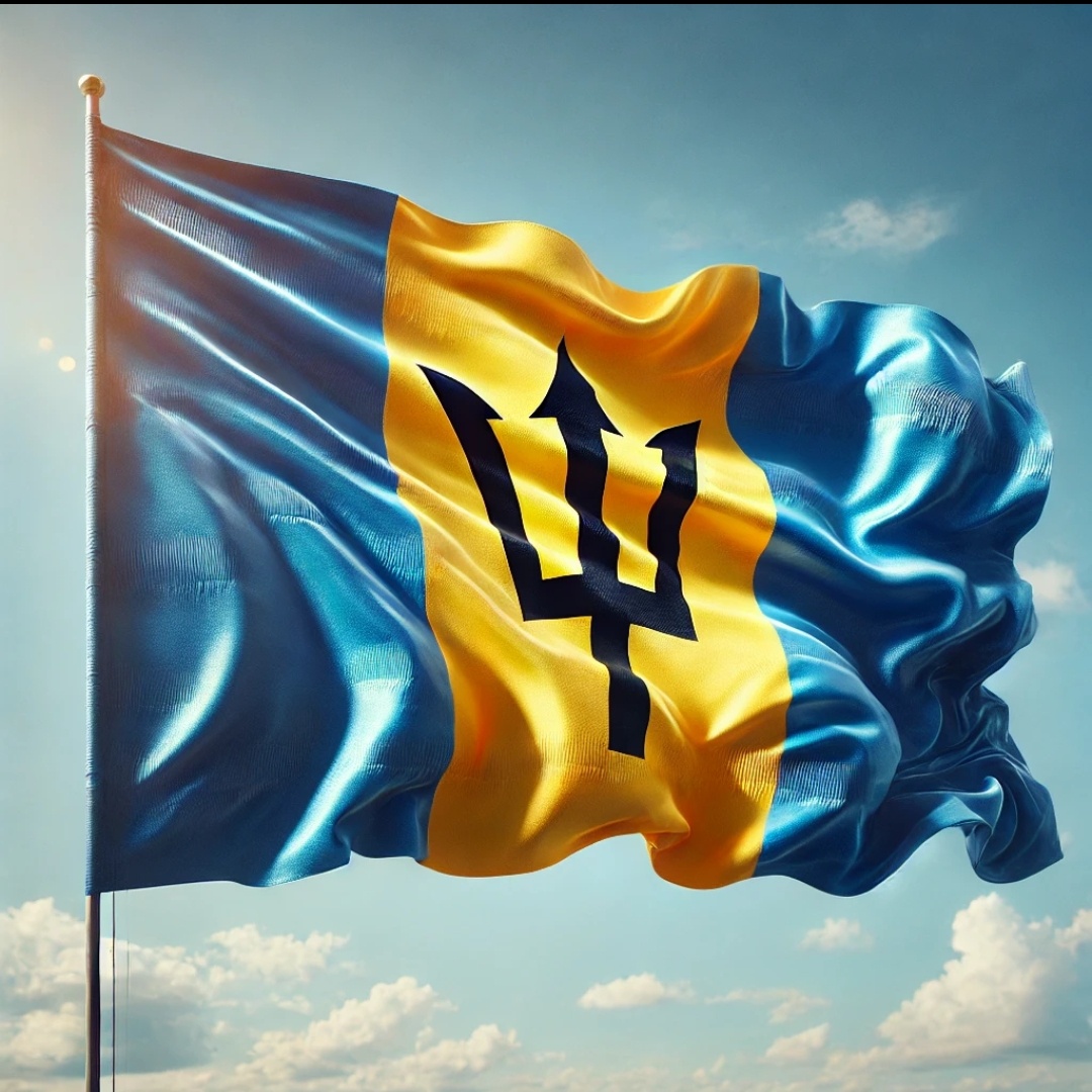 Барбадос — это островное государство в Карибском море, входящее в состав Малых Антильских островов. Он известен своими белыми песчаными пляжами, лазурной водой, колониальной архитектурой и богатой культурой. Флаг Барбадоса — один из самых узнаваемых в мире. Он состоит из трёх вертикальных полос: две крайние — синие, символизируют небо и море, а центральная — золотая, олицетворяет песчаные пляжи острова. В центре — чёрный трезубец, но не простой: его древко обломано. Это означает разрыв с британским колониальным прошлым. Трезубец отсылает к морскому богу Посейдону, подчёркивая связь народа с океаном и морской мощью. Независимость Барбадос получил в 1966 году, а в 2021 году стал республикой, полностью отказавшись от монархии. Культура Барбадоса — смесь африканских, британских и карибских традиций. Официальный язык — английский, но в повседневной жизни часто используют барбадосский креольский диалект, известный как "баджан". Экономика опирается на туризм, сельское хозяйство (осо