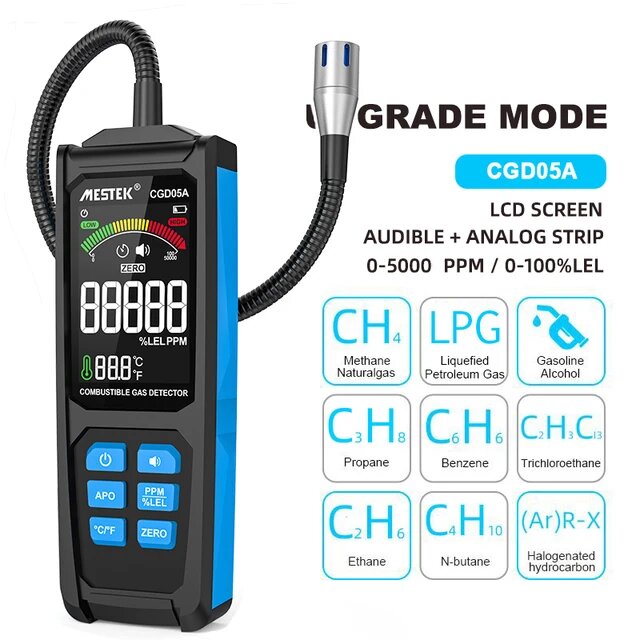 Газоанализатор MESTEK CGD900CGD05A – это надежный инструмент для детектирования природного газа, который обеспечивает высокую точность и безопасность в вашем доме или на производстве. С его помощью вы сможете легко и быстро выявить утечки газа, что особенно важно для предотвращения потенциально опасных ситуаций. Устройство оснащено четким ЖК-экраном, на котором отображаются измеренные значения в диапазоне от 50 до 50000 PPM и 0-100% LEL, что делает процесс эксплуатации интуитивно понятным даже для пользователей, не обладающих специальными знаниями.