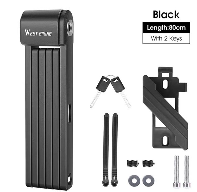 Складной велосипедный замок West Biking — это надежный и удобный способ защитить ваше двухколесное средство от кражи. Данный замок из прочной стали длиной 95 см обеспечивает надежную фиксацию и отличную защиту, позволяя закреплять велосипед к различным объектам. Компактный и легкий, он легко помещается в сумке или на раме вашего велосипеда, что делает его идеальным спутником для активных поездок по городу или длительных путешествий.