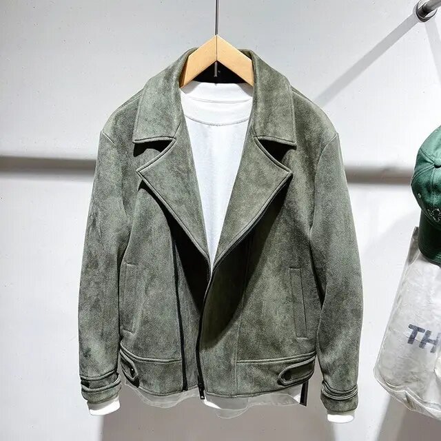 2. ⭐ Осенняя замшевая однотонная мужская куртка в стиле ретро