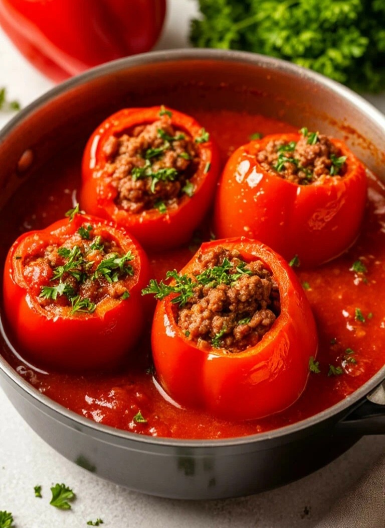 Фаршированные перцы — это не только вкусное, но и универсальное блюдо, которое легко адаптировать под любые предпочтения. Оно идеально подходит для ужина, так как может быть приготовлено заранее и разогрето перед подачей. В этом рецепте я расскажу, как сделать фаршированный перец с мясом, используя смесь свинины и говядины, а также добавив немного риса, овощей и специй для насыщенного вкуса. Приготовление этого блюда не займет много времени, а результат порадует вас и ваших близких. Давайте начнем! - В глубокую миску положите фарш свинины и говядины. - Лук (200 г) мелко нарежьте и добавьте в миску с фаршем. - Рис хорошо промойте и добавьте в ту же миску. Приправьте солью и перцем, затем тщательно перемешайте. - Отдельно нарежьте морковь и оставшийся лук полукольцами. - У болгарского перца срежьте верхушку и промойте внутри. - Начинайте фаршировать подготовленные перцы мясной смесью. - В глубокой сковороде или кастрюле разогрейте растительное масло на сильном огне. - Добавьте нарезанный