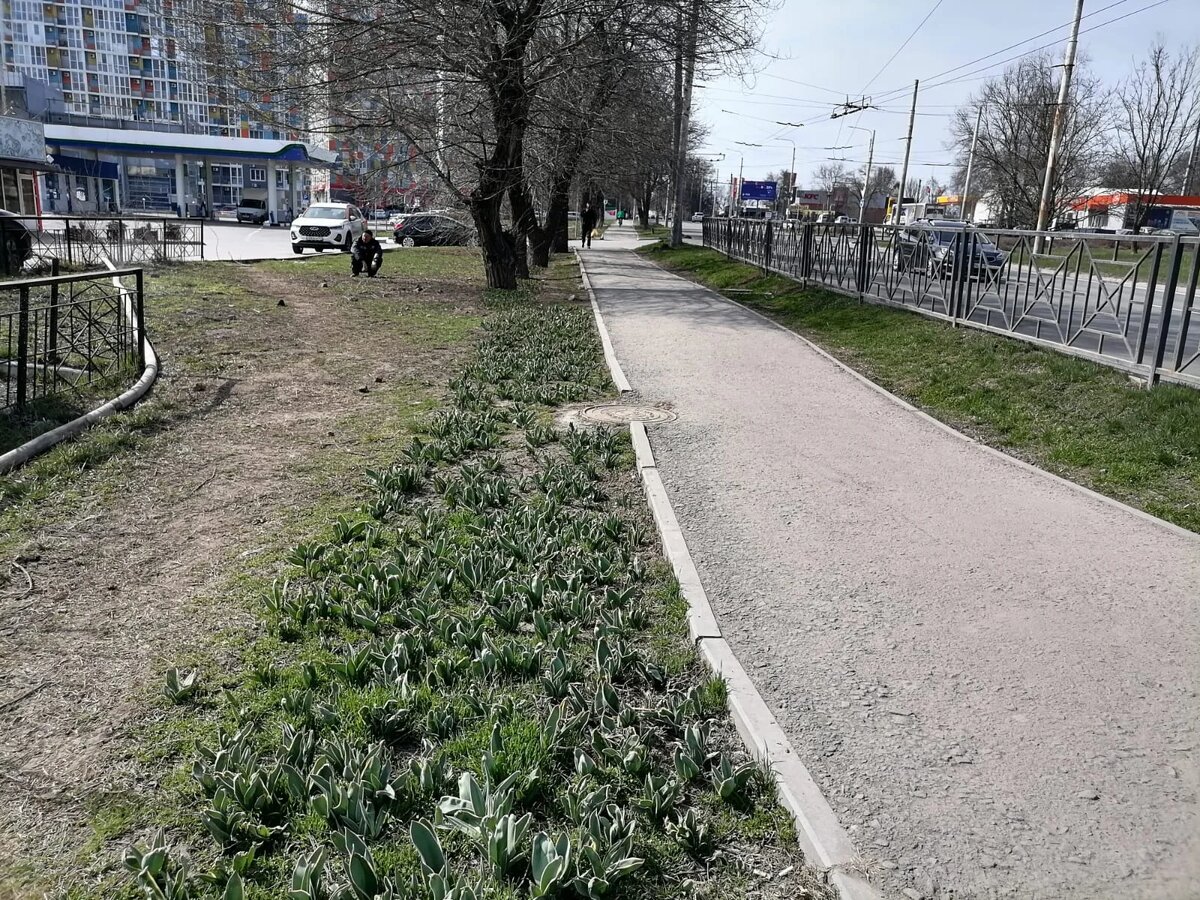 В Ростове давно не было осадков, цветы могут засохнуть Горожане ждут – не дождутся настоящего тепла. Уже начинают распускаться жердела и алыча, почки распускаются на деревьях, птицы поют. Скоро зацветут тюльпаны, посаженные в прошлом сезоне. Зеленые листики давно проклюнулись, но вот выглядят они в последнее время неважно. Осадков мало выпало осенью, зима почти бесснежная, по весне дождь тоже не особо баловал. Почва сухая, трескается, потому тюльпаны растут медленно, а верхние листики из-за мартовских морозов и вовсе скрутились, особенно на открытых участках, не защищенных от холодного ветра. И если на улице Пушкинской посадки выглядят еще более-менее – хотя здесь тоже необходим полив, то на улице Таганрогской цветы могут вообще не распуститься. Потрескавшаяся земля, листья от сухости свернулись в трубочку. Может, коммунальщики Ростова нас услышат и проведут полив тюльпанов? Влага цветам очень необходима. Елена Попова Фото автора