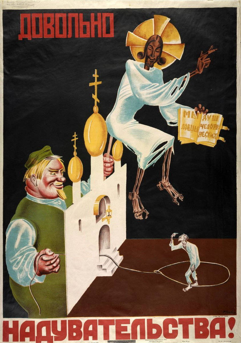 Хоть атеизм в СССР не был официально провозглашён как элемент государственной идеологии, это мировоззрение активно поддерживали и продвигали на партийном и государственном уровне. За время советской власти антирелигиозные настроения несколько раз успели сменить градус со снисходительных до тоталитарно-репрессивных, но их лозунг, в целом, оставался один: религия — это пережиток прошлого, корнем которого по Ленину является господство капитала по всех формах.