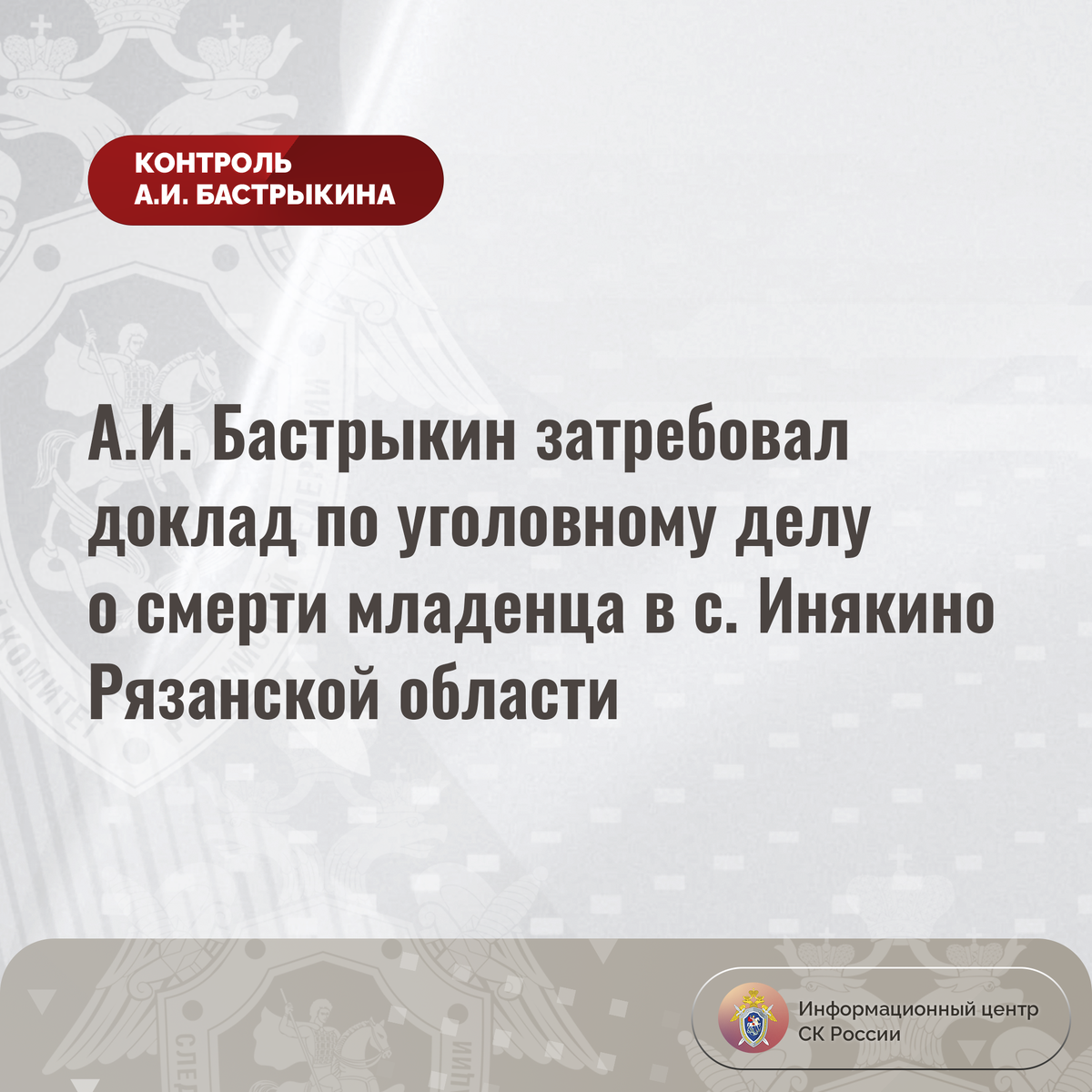 А.И. Бастрыкин затребовал доклад по уголовному делу о смерти младенца в с. Инякино Рязанской области