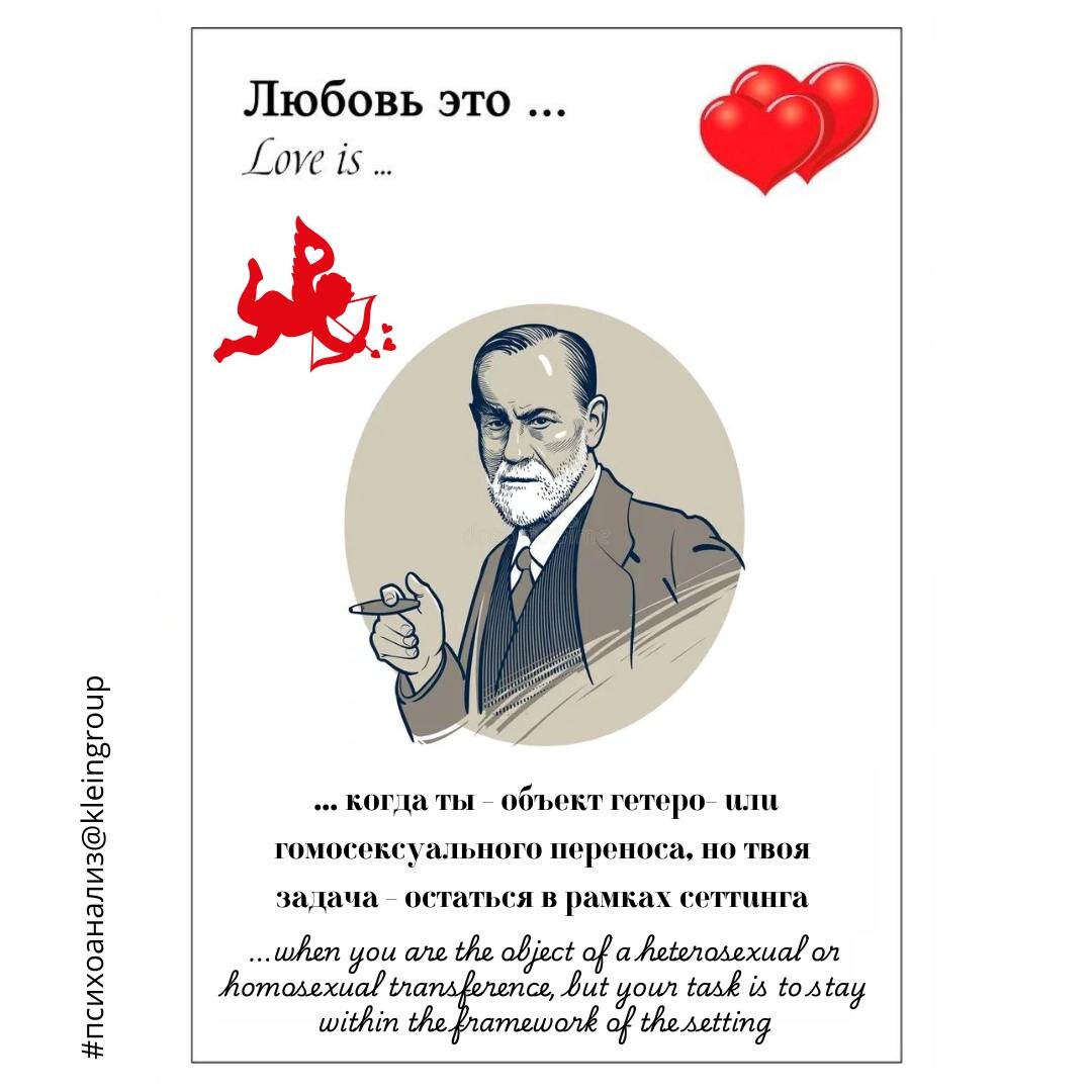 Гомо- и гетеросексуальный перенос: что чувствует аналитик? Раз уж мы говорим о любви в психоанализе, хочется затронуть одну из самых непростых её форм — сексуализированный перенос. Эта тема требует особой деликатности, но именно через неё проявляется нечто очень глубокое в отношениях между аналитиком и пациентом. Гомосексуальный или гетеросексуальный перенос — это не столько о сексуальной ориентации пациента, сколько о способе обращения с объектом. Вопрос в том, кого именно пациент делает своим внутренним объектом в аналитике — мать или отца, мужчину или женщину, желанного или отвергнутого? Фройд писал Вильгельму Флиссу в 1897 году: «Я обнаружил, что я всегда влюблён в отца, и я теперь понимаю, почему я боюсь людей…» #фройд@kleingroup Аналитик, принимающий на себя проекции эротизированного переноса, может неожиданно для себя почувствовать: «я — сексуальный объект». Причём не в метафорическом смысле. Он может переживать это ощущение как насильственное, тревожное, захватывающее, воз