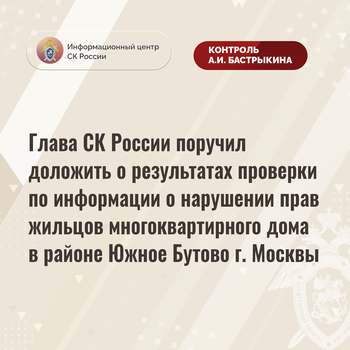 Глава СК России поручил доложить о результатах проверки по информации о нарушении прав жильцов многоквартирного дома в районе Южное Бутово г. Москвы