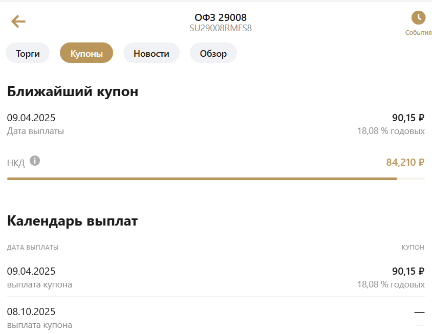 Через полторы недели, 7 апреля, Минфин опубликует данные по 22-му купону старосхемной ОФЗ ПК 29008. Текущий купон 18.08%. Но мы не станет ждать полторы недели, рассчитаем новое значение купона. Средняя ставка RUONIA за предыдущие 6 месяцев на 23.03.2025 получается 20,47%. Экстраполяция показывает среднюю ставку за предыдущие 6 месяцев на 06.04.2025 - 20,709%. Добавим наценку, установленную проспектом эмиссии, и получим следующую ставку купона: 20,709%+1.4%= 22.109%. Этот купон уже выше, чем текущий купон у новосхемных ОФЗ ПК. Например, 29019: После роста цены на облигацию 29008 в начале марта до 103% в последующем цена была довольно стабильна: Судя по цене другого старосхемного выпуска 29007, новый купон по которому был объявлен в начале марта. Под конец приведу расчет недооценки по всем старосхемным выпусках ОФЗ ПК и ее изменение с 07/03/2025. Удачи и трезвого анализа в ваших инвестициях!!! P.S. Подписывайтесь на мой телеграмм-канал: https://t.me/Cervonets