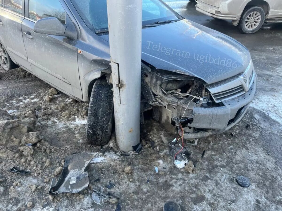 В Нижневартовске Opel влетел в опору ЛЭП, а после столкнулся с иномаркой