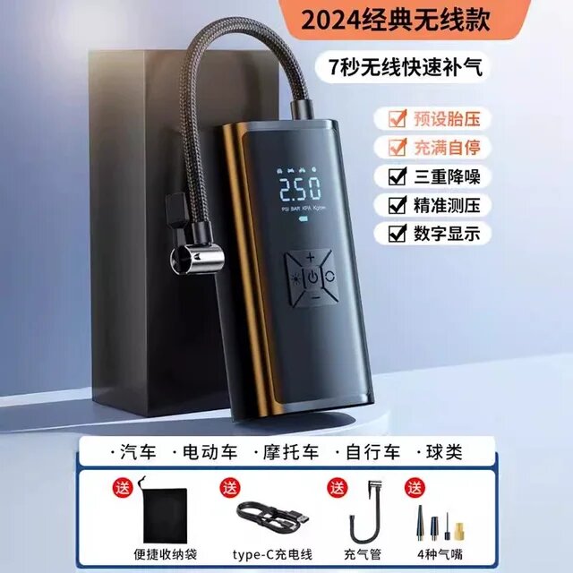 Перезаряжаемый воздушный насос YIJU 120 Вт – это современный портативный компрессор, разработанный для быстрой и эффективной накачки автомобильных и велосипедных шин, спортивных мячей и других надувных изделий. Оснащенный цифровым дисплеем, он позволяет легко контролировать давление, чтобы обеспечить точную и безопасную накачку. Благодаря своей беспроводной конструкции устройство невероятно удобно в использовании, а компактность и небольшой вес (всего 480 граммов) делают его незаменимым помощником в автомобиле, гараже или на прогулке. Встроенный аккумулятор позволяет использовать насос без необходимости подключения к источнику питания, а универсальное напряжение 12V делает его совместимым с большинством автомобилей.