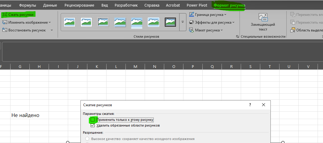 Кликните по любой картинке левой кнопкой → «Формат рисунка»→ «Сжать рисунки».