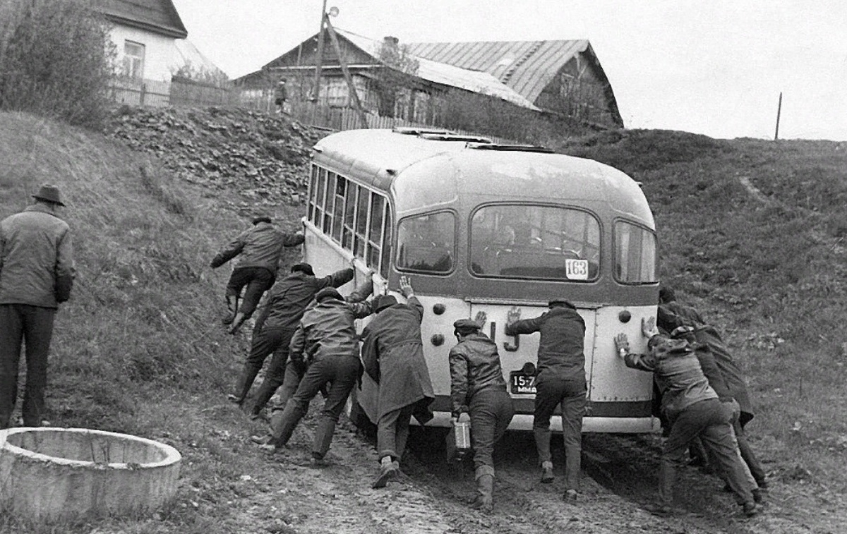 В Советском Союзе люди в деревне жили словно в параллельной вселенной, где всё шло своим чередом, независимо от того, какой был год на календаре. Время здесь текло медленно, а жизнь подчинялась своим законам, независимым от прогресса. Дороги оставляли желать лучшего, и любой выезд за пределы деревни превращался в настоящий экстрим. Особенно интересным мог быть обратный путь домой, когда радость от посещения города сменялась неожиданными препятствиями. Возвращаться приходилось на автобусе, который нередко застревал в грязи или глубоких лужах. В такие моменты пассажиры объединялись и превращались в настоящую команду спасателей. Выталкивание автобуса было привычным делом для всех, кто ехал в нём. Мужчины брали инициативу на себя, женщины поддерживали морально, а дети наблюдали за происходящим с любопытством. Это было своеобразное проявление коллективизма, которое воспитывалось в каждом советском гражданине. Такие ситуации сближали людей, ведь в условиях отсутствия современных удобств при