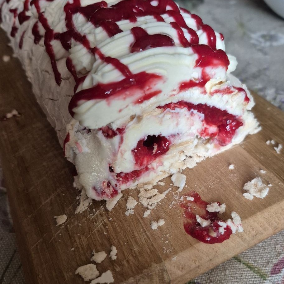 Меренговый рулет с малиновым джемом и орешками - вкусный и нежный