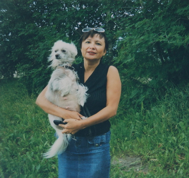 Ехала очередной раз из отпуска году в 2003. В Москве, на Ленинградском вокзале ждём посадки на Мурманский поезд. Ждём- потому что мы вдвоём. Я и Синди, моя китайская голая хохлатая собачка. Тут важно сказать как мы выглядели. На Синди джинсовый комбез с лейблами, слева кармашек с бумажкой. Сама шила комбез из своих джинсов. На голове хвостики с цветными резиночками и крашеные в красный цвет пряди длинных Синдиных волос. Я в джинсах такого же цвета и пиджак светло-голубой джинсовый. Была в Италии - приоделась)). А на плече у меня гитара в чехле. Купила в Москве, решила научиться играть. Я после 45 лет многое чему захотела научиться. Итальянский освоила, компьютер, на права сдала, вот и гитара потому. Училась по самоучителю. Вот тут я с гитарой на работе, училась в свободное время, кстати и итальянский на работе учила и билеты ГИБДД. Научилась играть бегло 5 песен из самоучителя.Типа, " Когда весна придёт не знаю" и " Крепко за баранку держись шофёр", на этом и успокоилась, зан