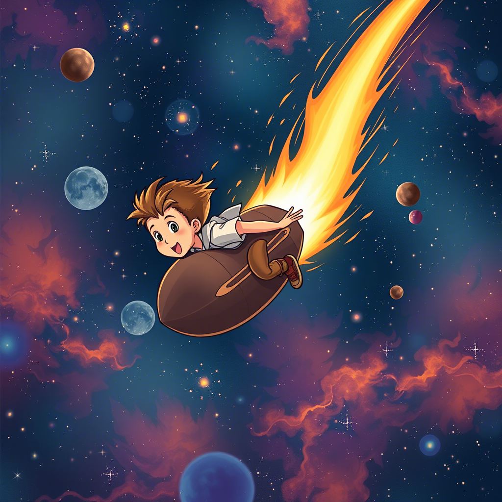 -Я сделаю это, сделаю для тебя, мой единственны друг, - сказал Аструм. Малыш взял серебристой пыли из лунного луча дунул на неё и прыгнув на пролетающий мимо метеорит, полетел...Он пролетал мимо множества кружащихся галактик, на хвосте дружелюбного метеорита.