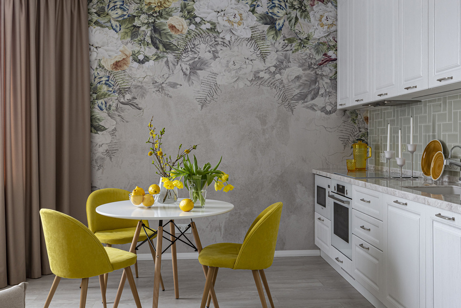 На кухне отделка изнашивается быстрее всего. Стены страдают от пара, капель жира, копоти и перепадов температуры. Обычные обои быстро выцветают, покрываются пятнами или плесенью — особенно если выбирать наугад.