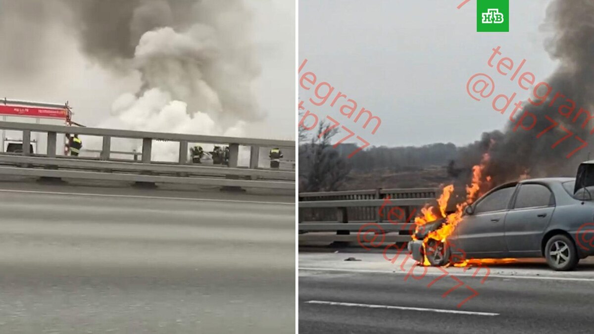 Движение затруднено на Киевском шоссе из-за горящей машины.