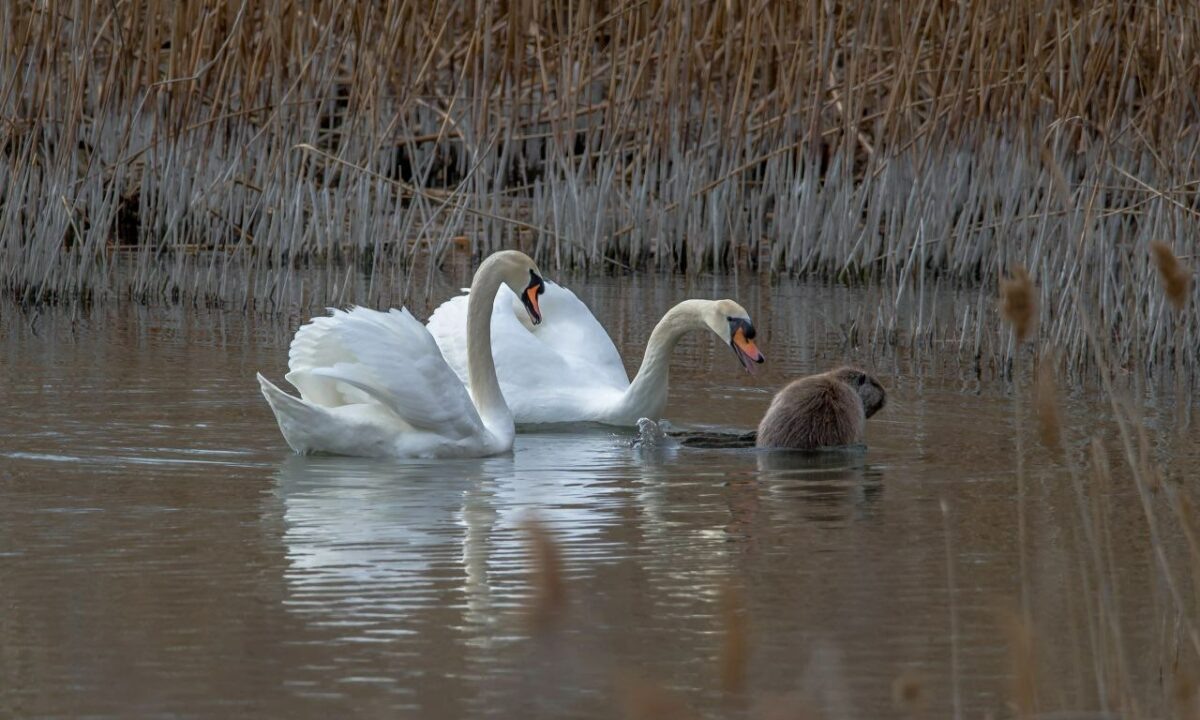 В этот раз под внимание лебедей и в объектив местного фотографа попала нутрия, которую выселили.