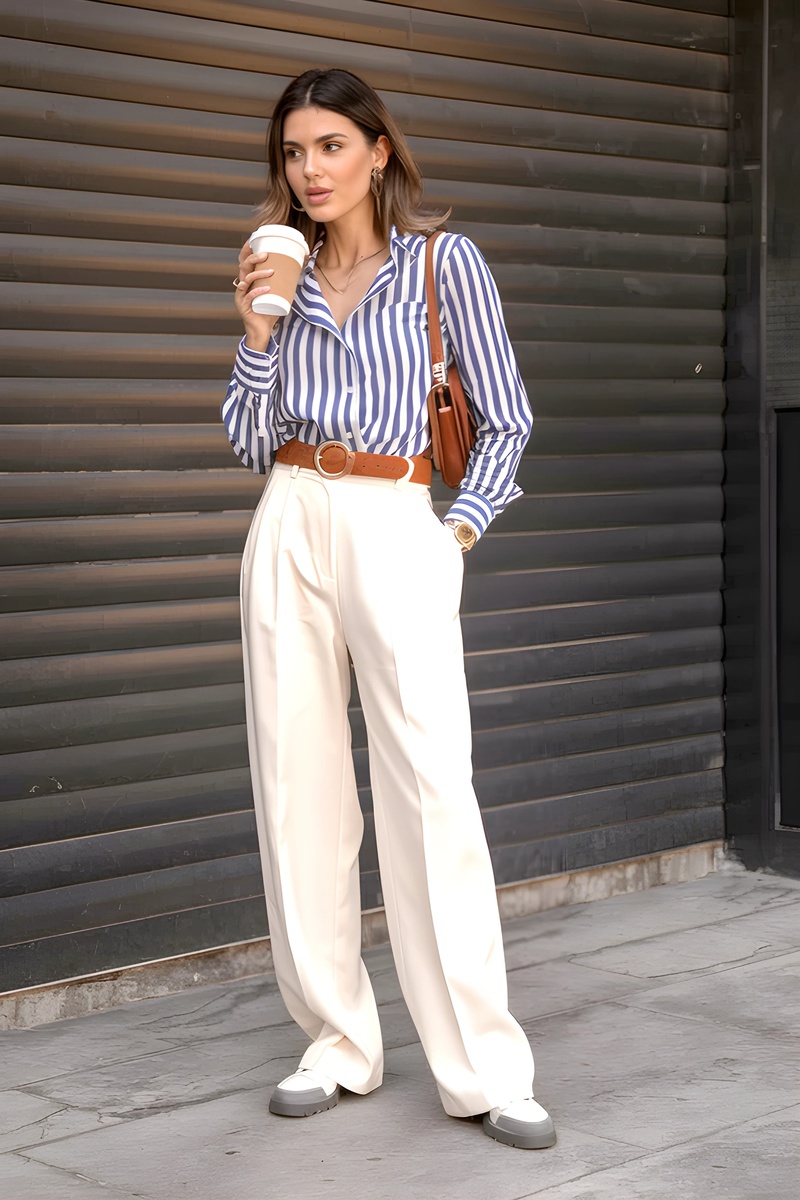 Брюки свободного покроя — настоящее благословение для тех, кто не в восторге от своих ног. Только не берите те, что метут пол! Идеальная длина — чуть выше щиколотки или едва касаясь обуви. Если взять короче — рискуете выглядеть так, будто внезапно выросли из брюк.