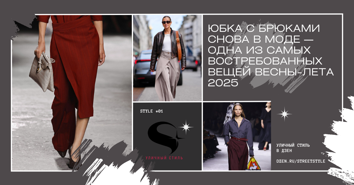 В последние несколько сезонов дизайнеры уделяют все больше внимания практичным и удобным вещам. И с этим трендом в моду возвращается образ юбка поверх брюк. Брюки с юбкой появились еще в 19 веке, когда женщины активно боролись за свои права и хотели одеваться в удобную одежду. На протяжении многих лет многим женщинам нравился образ юбки с брюками. Впоследствии он больше активно не использовался. Однако несколько дизайнеров сделали на нем акцент в своих коллекциях весна-лето 2025. Среди них: Courrèges, Bottega Veneta, Louis Vuitton, Alaïa, Boss, Balmain и другие. Дизайнеры рекомендуют остановиться на однотонных моделях без лишних деталей. Отлично смотрится с классической рубашкой, а также с топом и футболками. Можно надеть лоферы или классические туфли. ☆∘☆∘☆ Хотите узнать больше о том, как раскрыть свой индивидуальный стиль? Подписывайтесь на канал УЛИЧНЫЙ СТИЛЬ в Дзен (@streetstyle), чтобы ничего не пропустить и первой узнавать о всех новых трендах уличной моды! Новые статьи — кажды
