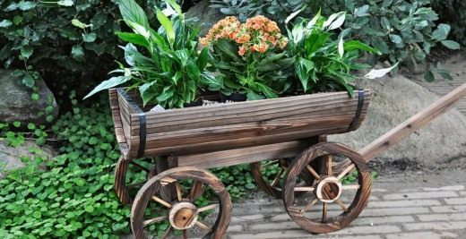 Теперь у меня есть «европейскийоазис». Не самое видное место, у дорожки к мастерскойуместились домик, колодец, тачка, полутораметровая мельница и несколько обитателейсада. Дерево – мойлюбимый материал, с ним приятно работать. Все мои задумки воплощаются в жизнь с помощью досок и бруса.