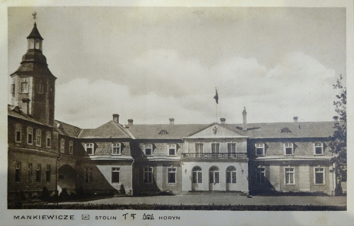 "Уже в первые месяцы немецко-фашистской оккупации в бывшем дворце Радзивиллов в Маньковичах расположился шеф СС города Столина. В ночь с 17 на 18 января 1943 года партизаны напали на резиденцию. Эта вооружённая акция не достигла поставленной цели - руководитель эсесовцев дождался подкрепления из Столина, укрывшись в башне дворца. В ходе боя и пожара дворец был частично разрушен22. За годы войны были очень повреждены деревья парка, вывезены въездные кованные ворота. Деревня Маньковичи с двадцатью её жителями была сожжена немецко- фашистскими захватчиками." Александр Вабисщевич "Усадьба Радзивиллов в Маньковичах"