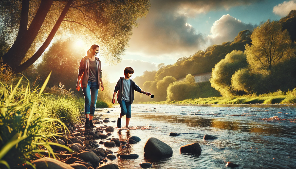 - Бросать камни в воду — можно соревноваться на дальность или количество брызг.