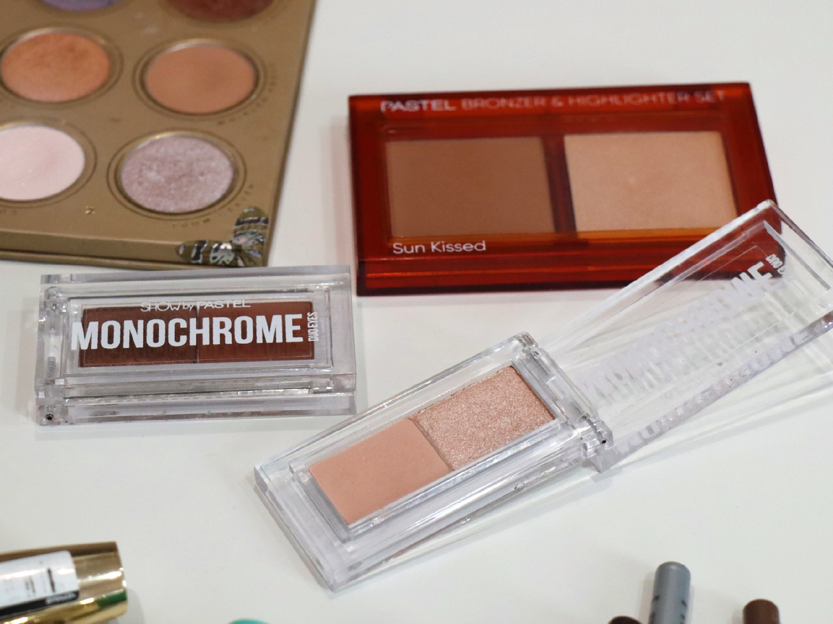 Здравствуйте, уважаемые читатели моего блога. Сегодня хочу рассказать о недорогих средствах, качеством которых я довольна. Конечно, в работе я использую косметику разных ценовых категорий, но конкретно продукты из статьи я покупаю снова и снова, так как использую их чаще всего. Некоторые клиентки часто даже просят названия этих средств, когда видят результат от них на своем лице. В конце публикации вы сможете увидеть, как некоторые продукты смотрятся в готовом макияже. Итак, начну с теней. Часто меня просят подсказать тени, которые можно использовать в повседневном макияже, причем девочки просят подсказать крохотные палетки на 2 рефилла или же однушки. На самом деле в работе я чаще всего использую большие палитры теней, но обычному пользователю они ни к чему. Вот что могу посоветовать, так это тени или палетку бронзер/хайлайтер, которую можно использовать в качестве теней. У меня на фото двушки от Pastel Cosmetics (21 и 27 оттенки) и бронзер в 01 оттенке. Кстати, именно палетку бронзер