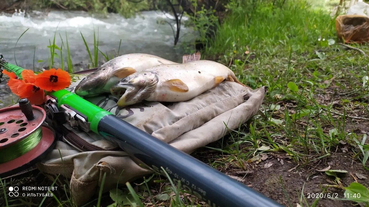 Ну, что ж успех нужно закреплять… Свежий кусочек пескаря, полетел в тоже место. Удар, проводка и еще одна форель переселилась в мою сумку, висящую на боку. На пятой поклевке, я начал понимать, что происходит, и как я это делаю. Руки и голова стали действовать заодно. Минут за десять, я вытащил с этого мечта шесть штук форелей, размером от 30 до 40 сантиметров. Еще минут пять безрезультатных попыток, и я понял, что тут уже все или разбежались или поймались. Я сместился вниз по течению до следующей группы камней. Все повторилось, только на этот раз с одного места я поймал 3 хороших экземпляра.