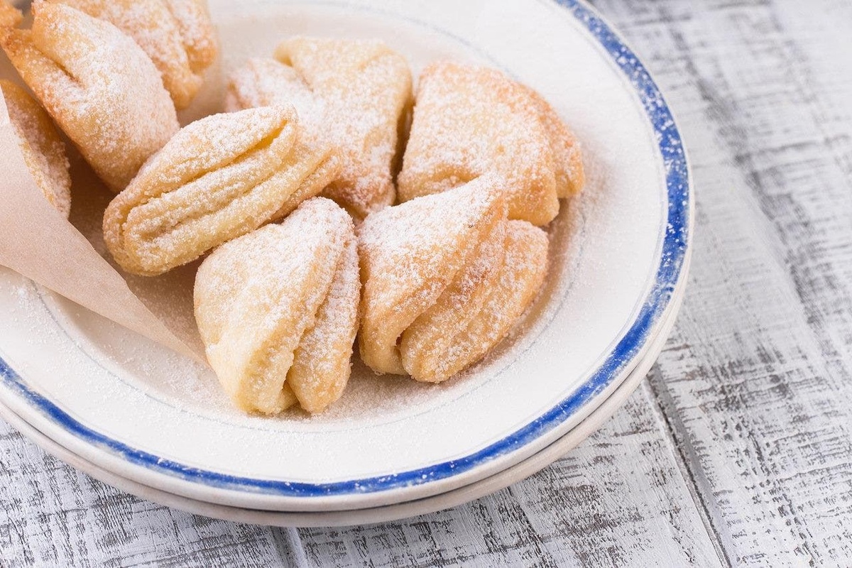 Формирование: Раскатайте охлажденное тесто, вырежьте кружочки. Обмакните их в сахар с корицей, сложите пополам, снова в сахар, затем еще раз пополам.