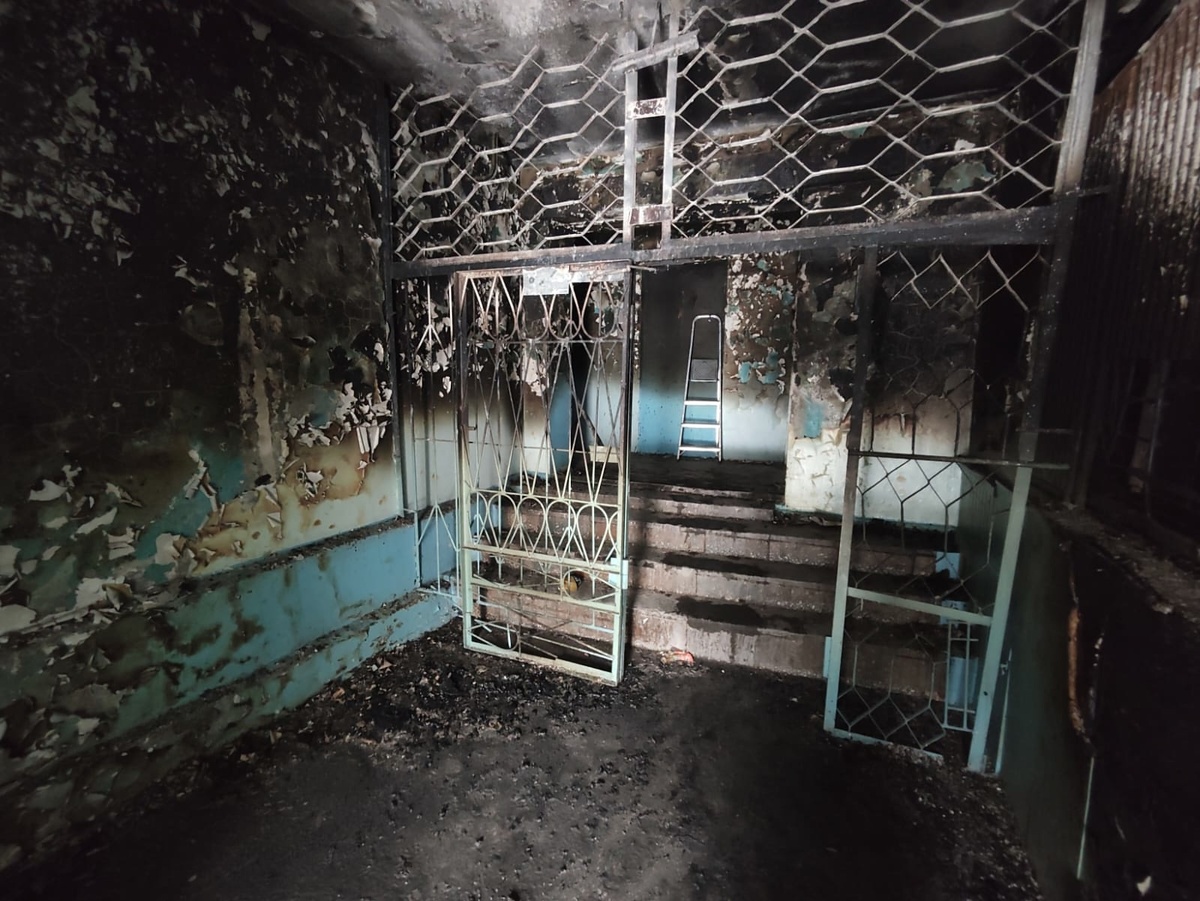 В результате пожара повреждён тамбур на первом этаже на площади 20 кв. м, коридор закопчён.
