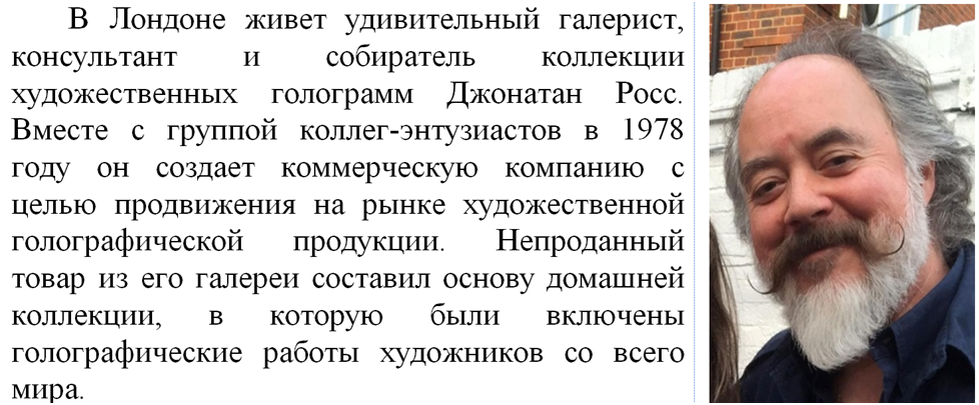 В качестве примера приводим несколько художественных голограмм разных авторов из домашней коллекции Джонатана Росса.