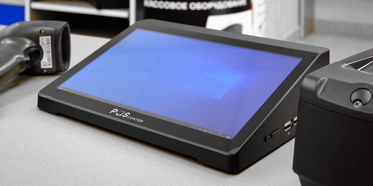 В фотообзоре расскажем и покажем, чем интересен бюджетный сенсорный моноблок POSCenter Prime, кому подходит такая модель. В обзоре вас ждут фотографии POS-терминала, характеристики и мнение ритейл-экспертов. Видим лаконичный компактный POS-терминал. Габариты 244×184 см при высоте 6,5 см. По размерам этот пос-компьютер — меньше листа А4, а значит, займет минимум места в кассовой зоне. POSCenter Prime поддерживает WiFi и Bluetooth. С помощью беспроводных каналов вы сможете работать с беспроводным сканером штрих-кодов, терминалом сбора данных, а при необходимости печатать ценники или маркировку на мобильном принтере этикеток. Богатый набор разъемов для соединения с кассовым аппаратом, сканером, весами и другой нужной техникой: