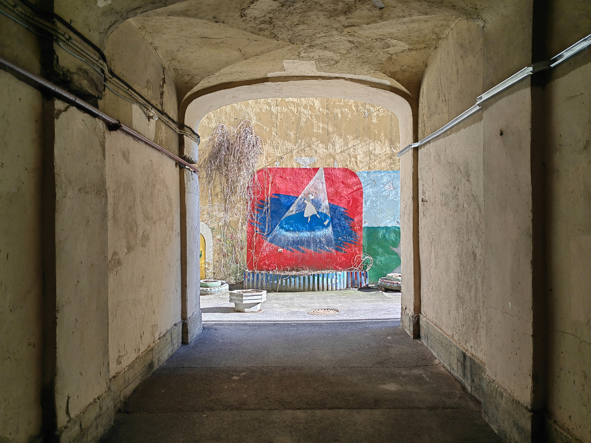 Несколько дней назад мы жили в отеле на Большом проспекте Петроградской стороны и во дворе дома номер 19 увидели необычное яркое пространство, которое называется "Кошкин двор". Во время осмотра этого двора к нам сзади незаметно подошла пожилая женщина и с серьёзным лицом произнесла фразу: "Мы за вами смотрим... Мы следим за вами... Смотрим, смотрим за вами..." Я уж было приготовился к худшему... начиная с расспросов о том кто мы и что здесь делаем, и заканчивая фразой "это частная территория". Но женщина оказалась в итоге довольно милой и рассказала нам о том, что в этом доме с 1938 по 2019 год жила Нина Васильевна Ященко, которая была хранителем здания и благодаря её инициативе во дворах поддерживался порядок. В том числе был приглашён художник, который расписал дворовые стены. Точную дату наша собеседница вспомнить не смогла. Но, скорее всего, это произошло в 2006 году, когда в Петербурге проводился конкурс по благоустройству придомовой территории. Он назывался «Город в твоих рука