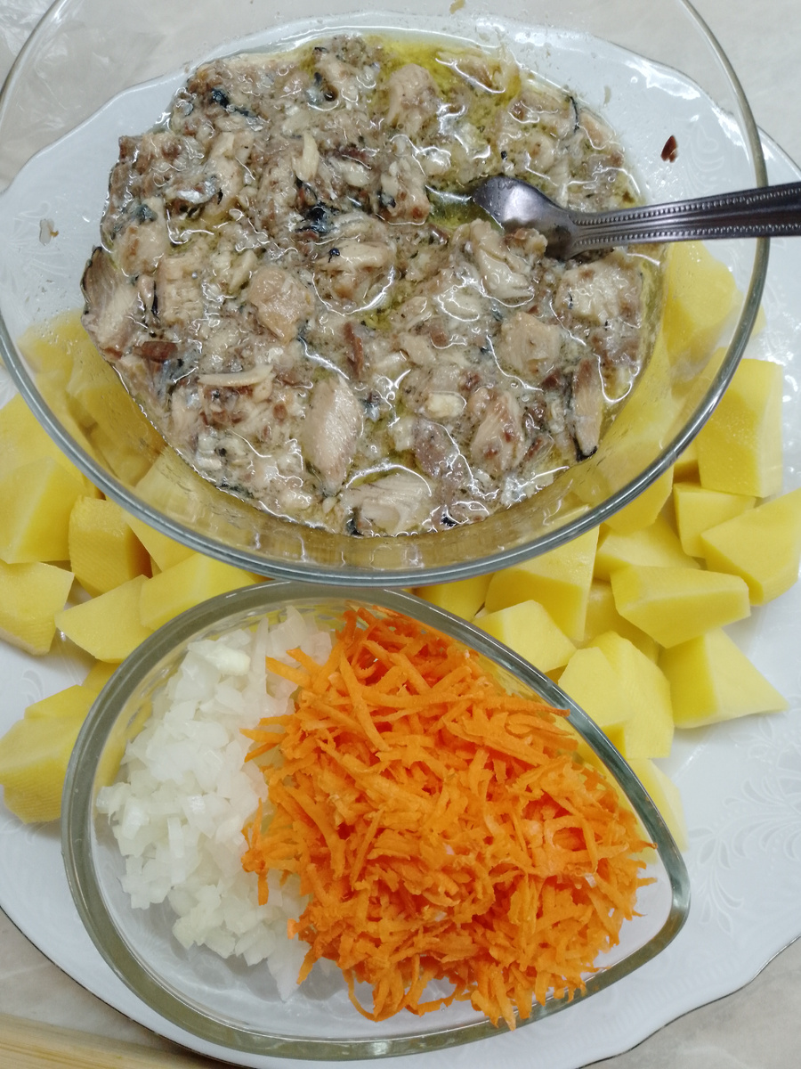 В холодный, дождливый день очень приятно согреться густым, горячим супчиком. Сегодня вариант супа из рыбной консервы. Рыбу можете взять любую, которую любите. У меня сегодня Иваси. Итак, нам понадобиться не много обжарить лук и морковь на растительном масле. У меня консерва была с добавлением масла, так что я обжаривала овощи на бульоне с маслом из банки. Далее добавляем картошку заливаем водой.(я налила 1,5 литра). Добавляем рыбурыбу, предварительно убрав крупные косточки. Когда вода закипела. Можно снять пенку(если она есть) и добавить пшено, примерно, 50 гр. Любите погуще, то добавьте больше пшена. Я на это количества воды больше 80гр.не добавляю. Варим минут 15-20. При умеренном кипении. Соль по вкусу. Никакие специи я не добавляю, так как при консервации используется и перец и лавровый лист. Готовый суп посыпаем зеленью. Быстрый, вкусный и легкий в приготовлении суп обязательно придется Вам по вкусу. Приятного аппетита! P. S. Не забываем заглядывать в мой телеграмм канал