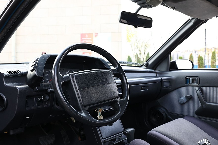 Диски изначально были простыми 13-дюймовыми штамповками, но их место заняли свежеокрашенные 15-дюймовые составные колеса BBS RM от первого поколения Golf GTI. Диски, разумеется, встали через проставки: штатная разболтовка Metro/Swift – 4×114,3 вместо 4×108 у BBS.
